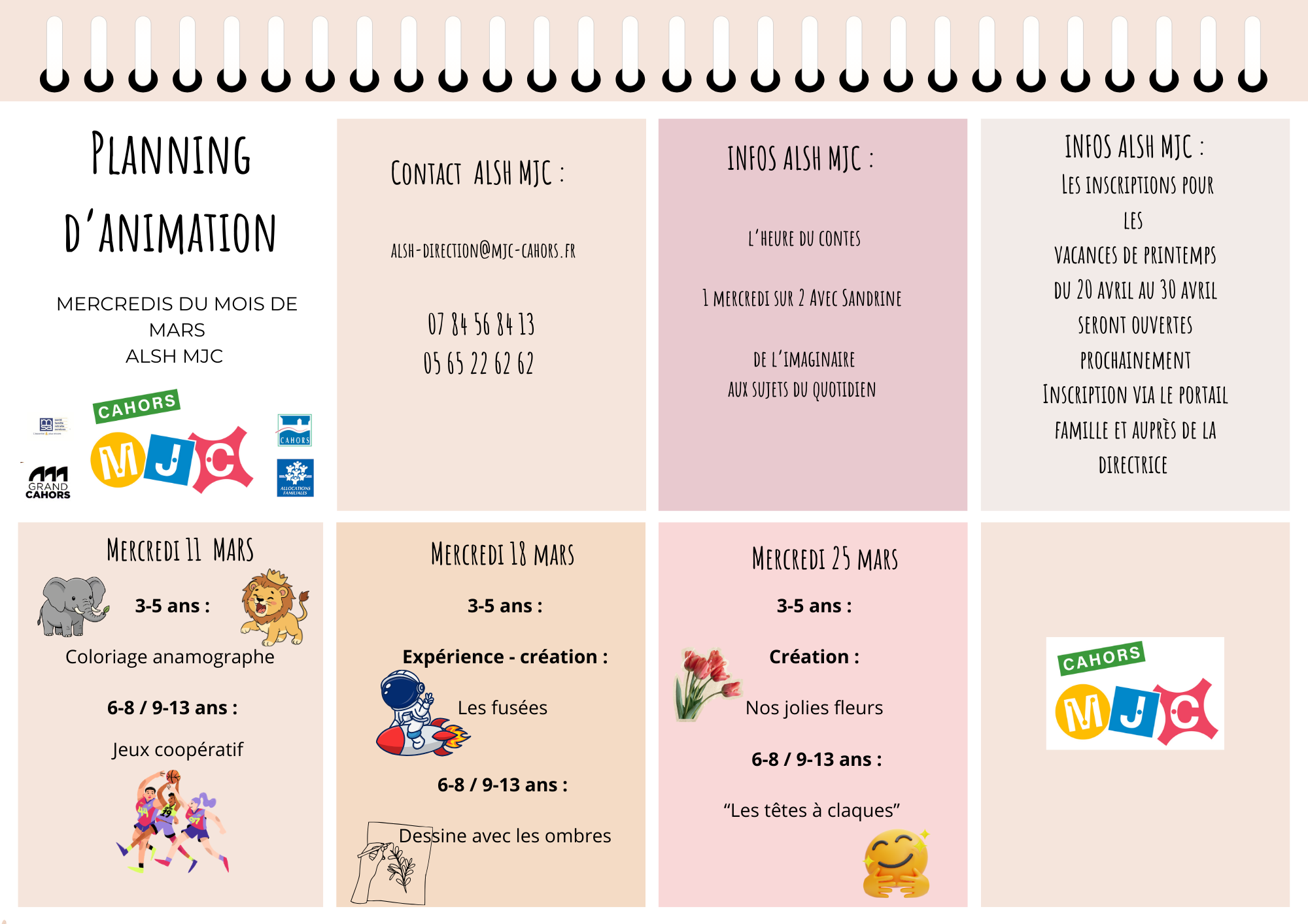 - Pour tous renseignements, prendre contact avec Lena FERNANDEZ, Directrice de l’accueil : alsh-direction@mjc-cahors.fr